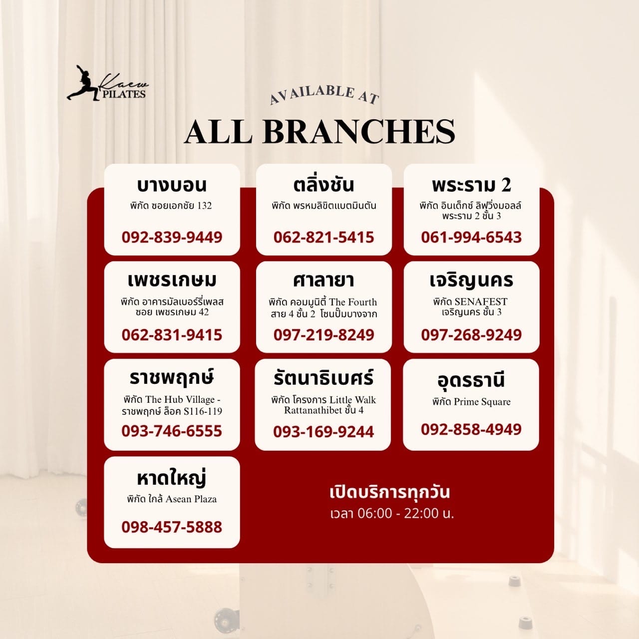 • สามารถเลือกใช้บริการได้ทั้ง 11 สาขาของ KAEW PILATES