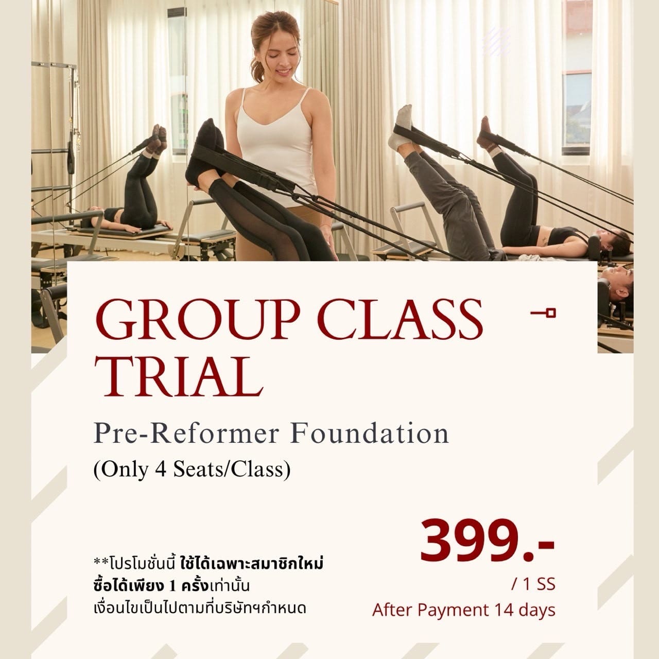 Keaw Pilates มอบสิทธิพิเศษเพิ่มเติม ให้ลูกค้าใหม่ที่สมัคร 1SS-GROUP CLASS TRIAL เท่านั้น!